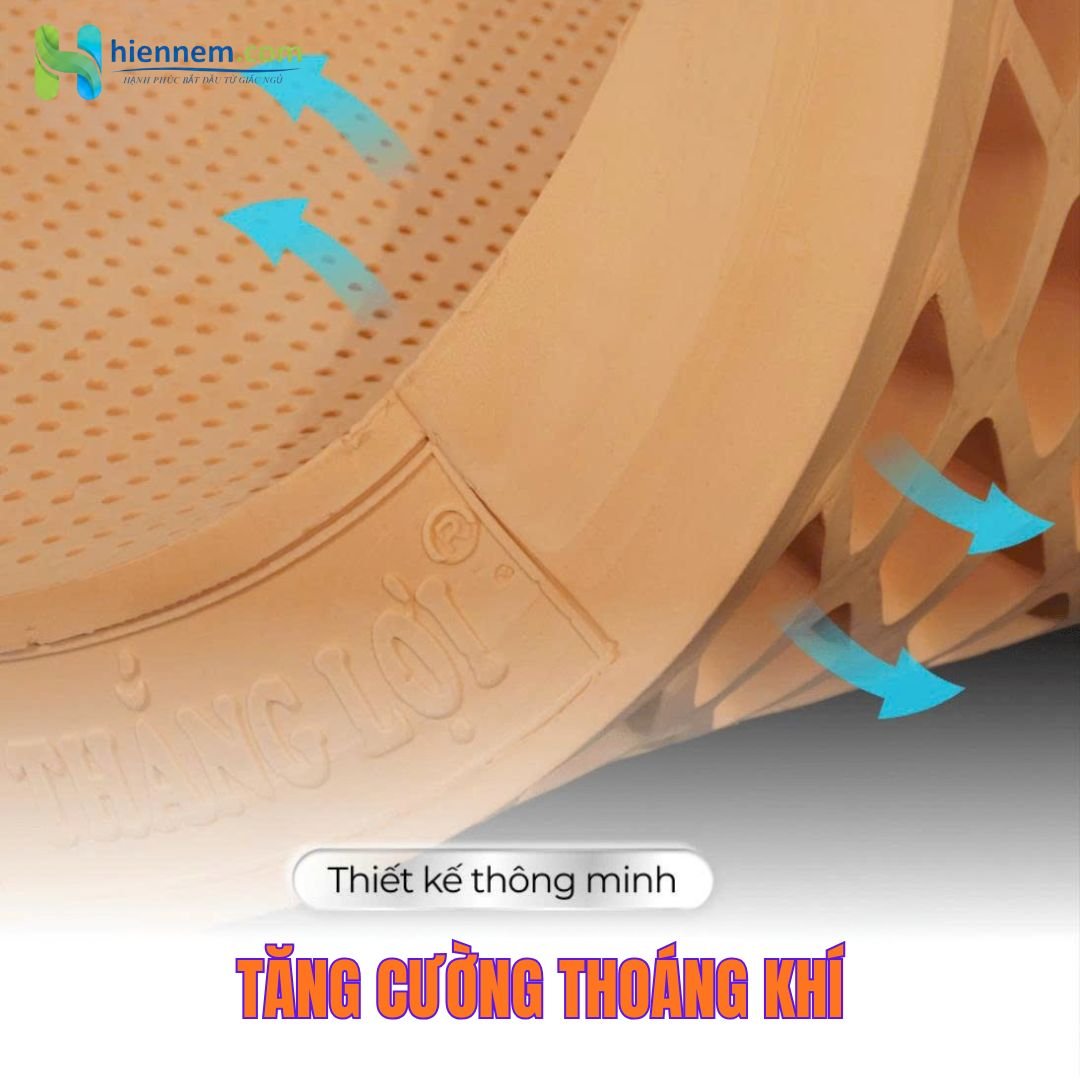 Thiết kế 5000 lỗ tròn nhỏ + 500 lỗ vuông lớn giúp nệm cực kỳ thoáng khí, nằm mát – không hầm bí. Nệm đúc nguyên khối siêu bền, giữ form nhiều năm, được bảo hành tới 15 năm.