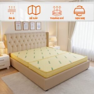 - Thiết Kế Gấp 3 Tiện Lợi:Nệm dễ dàng gấp gọn khi không sử dụng giúp phù hợp với phòng trọ, căn hộ nhỏ, nhà có trẻ em hoặc gia đình cần linh hoạt không gian sinh hoạt.
