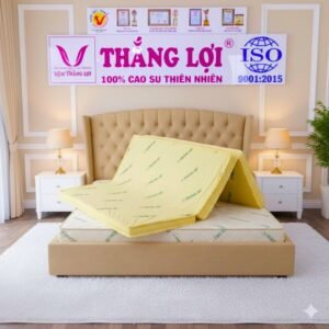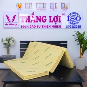 - Nệm cao su non gấp 3 Thắng Lợi là dòng nệm được nhiều gia đình, sinh viên, phòng trọ và nhà nghỉ lựa chọn nhờ thiết kế gấp gọn tiện lợi, độ đàn hồi tốt và mức giá hợp lý. Sản phẩm đáp ứng tốt nhu cầu ngủ êm,dễ di chuyển,tiết kiệm không gian trong điều kiện sinh hoạt hiện đại.