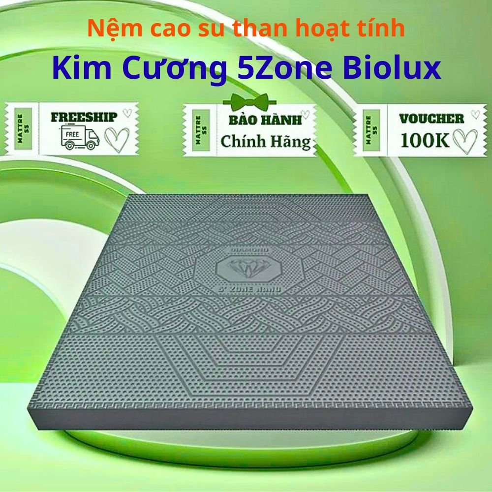 - Nệm cao su than hoạt tính Kim Cương 5Zone Biolux là lựa chọn lý tưởng cho những ai đang tìm kiếm một chiếc nệm êm ái , chắc lưng ,an toàn sức khỏe ,bền bỉ theo thời gian. Đầu tư đúng cho giấc ngủ hôm nay chính là bảo vệ sức khỏe lâu dài cho cả gia đình.
