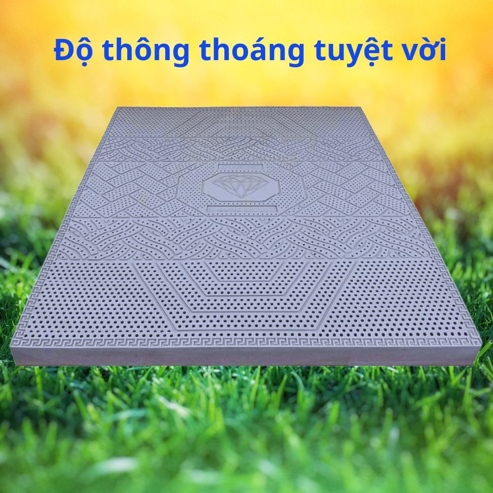 - Nệm nằm mát mẻ thoải mái:Hệ thống lỗ thông hơi phân bố đều khắp bề mặt giúp không khí lưu thông liên tục. Kết hợp với than hoạt tính, nệm không gây hầm nóng, mang lại cảm giác dễ chịu cả mùa hè lẫn mùa mưa.